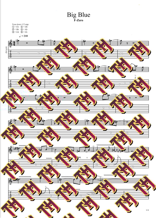 Guitar tablature from my Big Blue arrangement.
